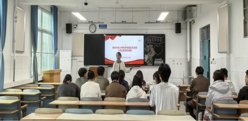2025年10月16日,金融与会计学院学生第五党支部在学院B202教室开展以“铸牢中华民族共同体意识,青春告白祖国”为主题的党日活动。本次活动由党支部书记李慧杰主持,党支部组织委员张珂瑜、宣传委员李双和全体17名学生党员参加。