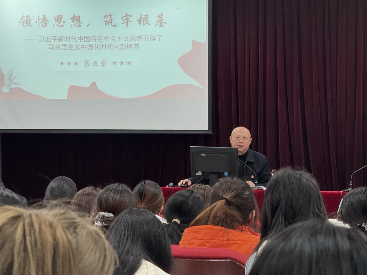 开班仪式结束后,陈书记为同学们讲授《习近平新时代中国特色社会主义思想开辟了马克思主义中国化时代化新境界》专题党课。陈书记首先从世界百年未有之大变局加速演进、中华民族伟大复兴进入关键时期、中国式现代化全面推进拓展等五个方面清晰梳理了习近平新时代中国特色社会主义思想产生的时代必然性,并从习近平新时代中国特色社会主义思想是马克思主义在当代中国发展的最新理论成果,是中华民族的文化主体性最有力的体现、是中华文化和中国精神的时代精华,是全党全国各族人民为实现中华民族伟大复兴而奋斗的行动指南等四个方面深刻阐述了习近平新时代中国特色社会主义思想的历史地位。