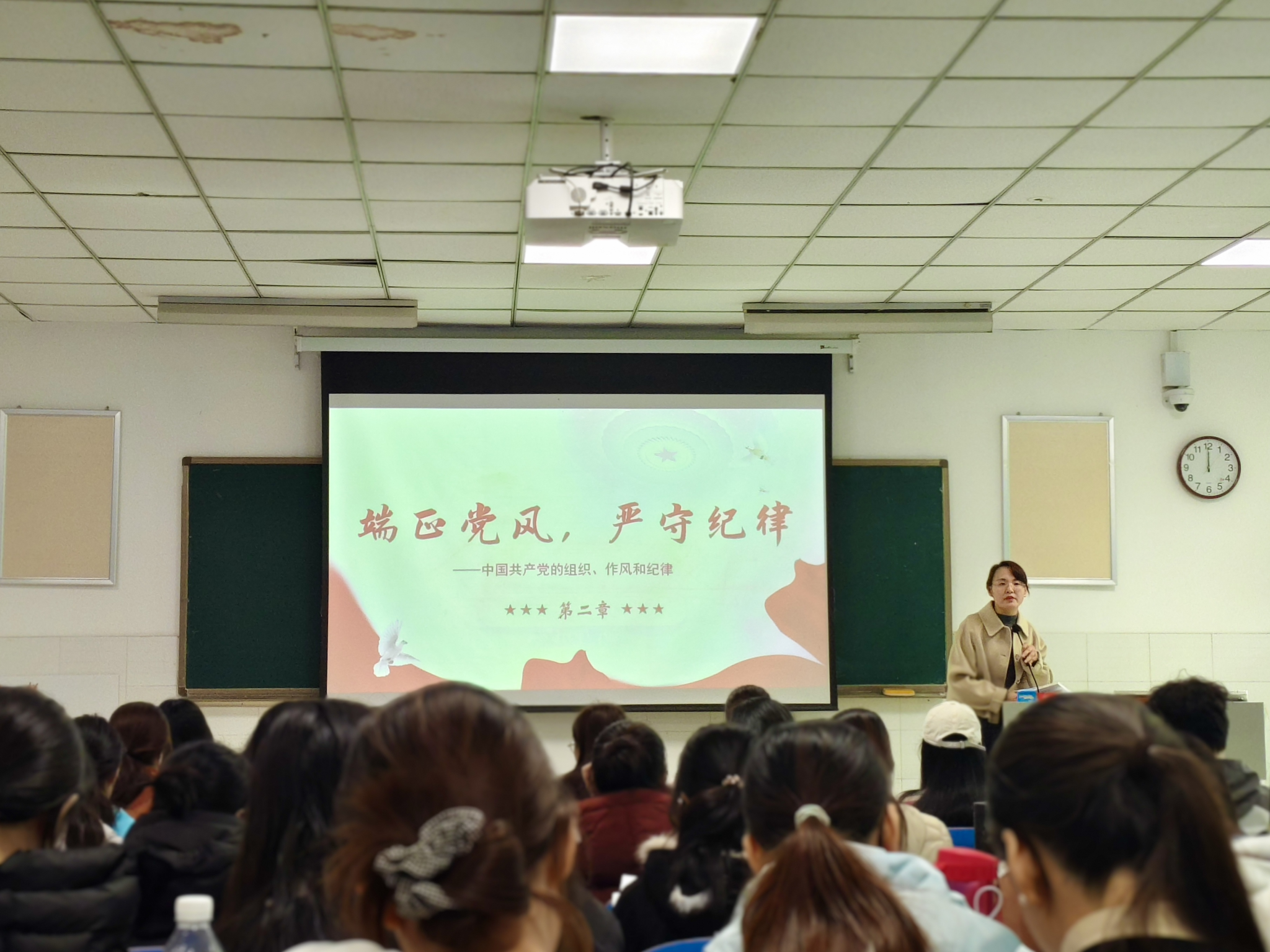 为进一步加强入党积极分子的思想政治教育,深化其对党的组织原则、优良作风和严明纪律的认识,10月27日中午,金融与会计学院于E102教室举行2025年第二学期入党积极分子培训班第七讲——《端正作风,严守纪律》。本次课程由金融与会计学院学生第五党支部书记李慧杰主讲。
