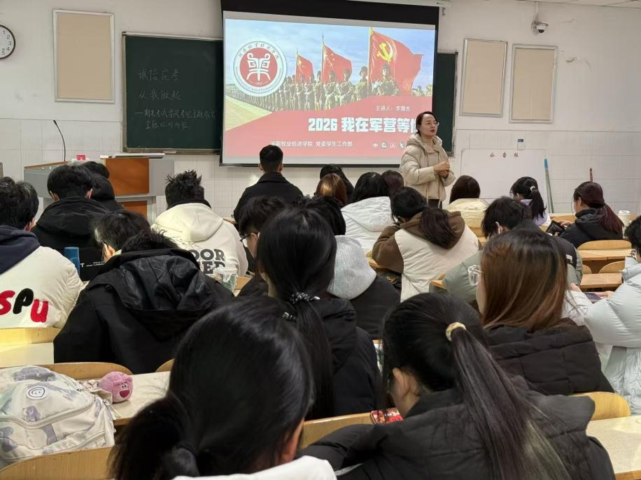 为贯彻落实国家征兵工作要求,加强大学生国防教育,引导学生积极应征入伍,金融与会计学院于12月中下旬组织各班级召开“2026我在军营等你”征兵政策宣讲主题班会。