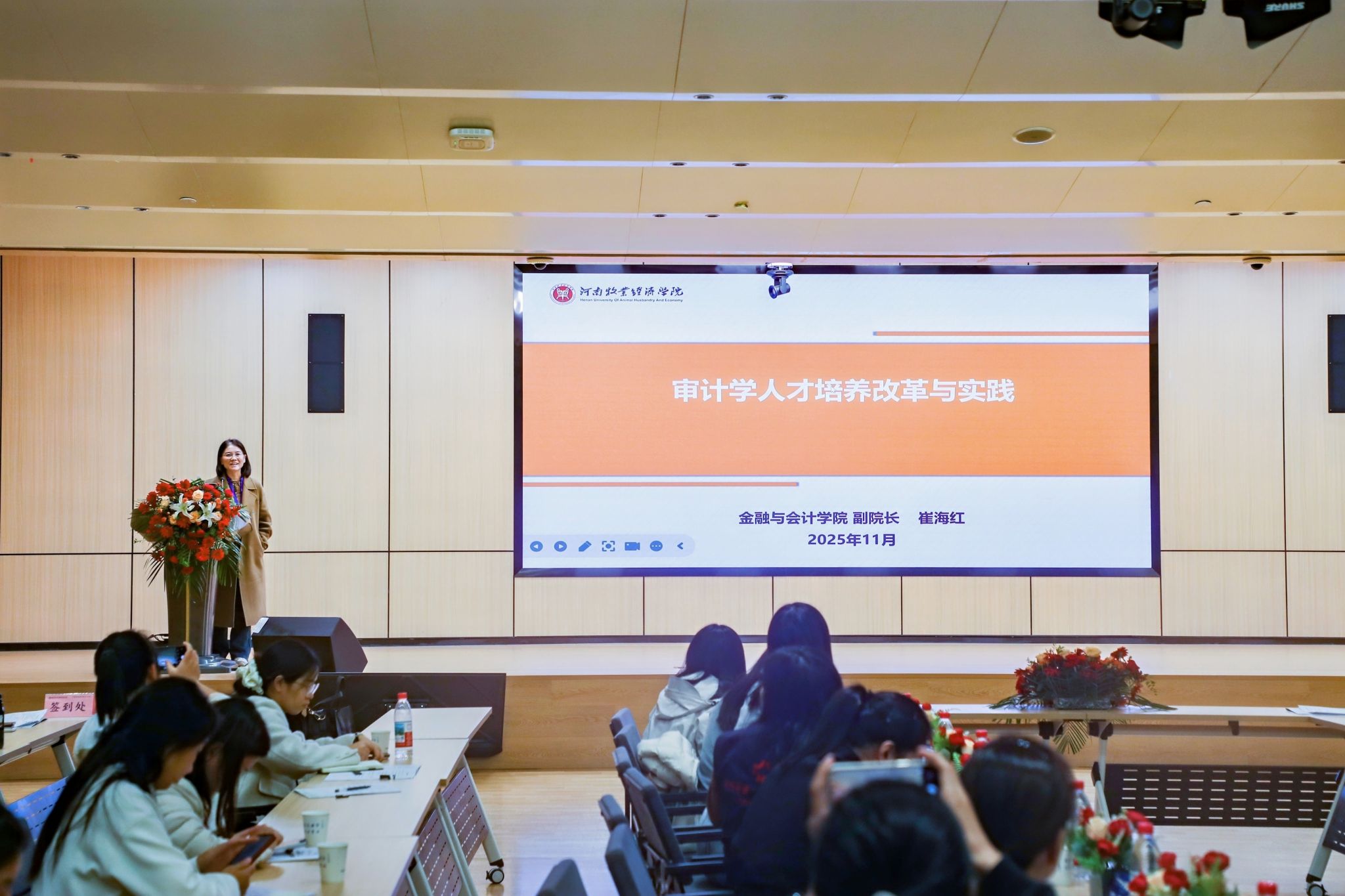 2025年11月2日,金融与会计学院副院长崔海红率队参加“中原审计发展论坛暨数智时代审计学科专业建设与高质量发展专题研讨会”。本次研讨会由河南省审计学会主办、郑州升达经贸管理学院承办,聚焦数智时代审计面临的新要求,共谋审计学科新发展,提升审计人才培养新内涵。来自河南省审计学会、省内外多所高校会计与审计学院、知名会计师事务所及企业的专家代表500余人齐聚一堂,共享学术盛宴。
