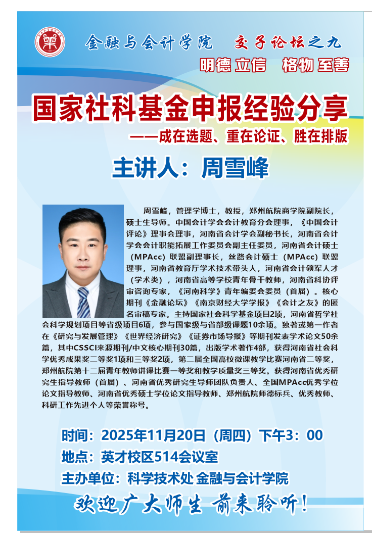 讲座海报:金融与会计学院2025年交子论坛之九