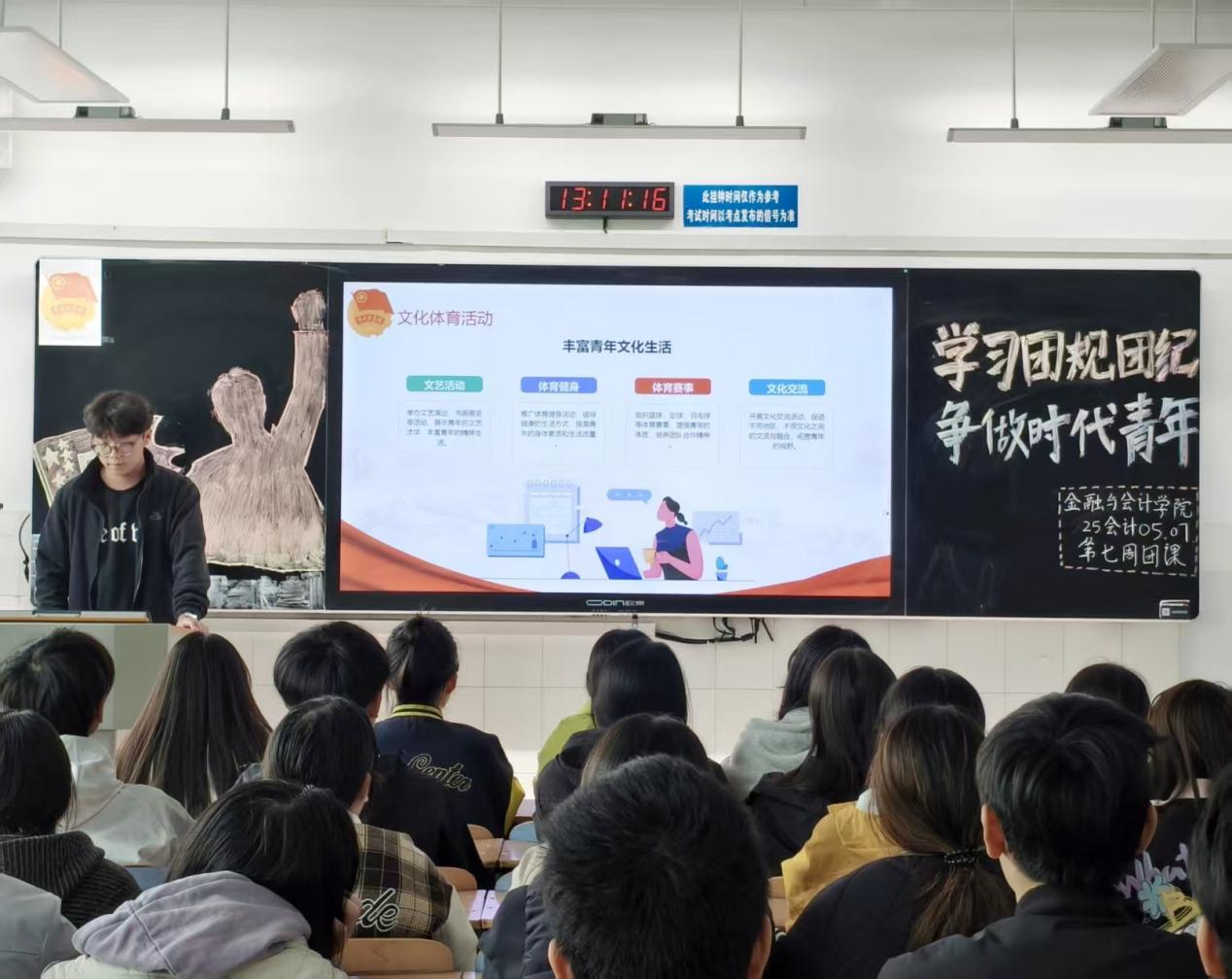 为助力同学们深入学习中国共青团团规团纪,自觉接受团的纪律约束,完成党赋予的重大时代使命,金融与会计学院于10月23日开展了以“学习团规团纪,争做时代青年”为主题的团课活动。