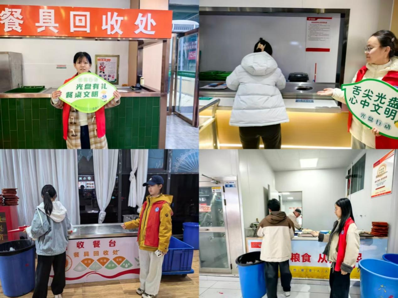 活动期间,我院志愿者提前到岗,分工明确,手持标牌,在餐厅的入口及打饭处引导学生有序排队,劝阻插队行为,维持餐厅秩序。在餐桌旁及餐盘回收处,我院志愿者积极引导学生餐后将餐盘收至指定回收点,提醒他们带走个人物品。面对插队占座等行为时,他们对不文明行为及时进行劝导。志愿者们用他们的耐心与微笑,为我们共同的用餐环境增添一抹亮色。